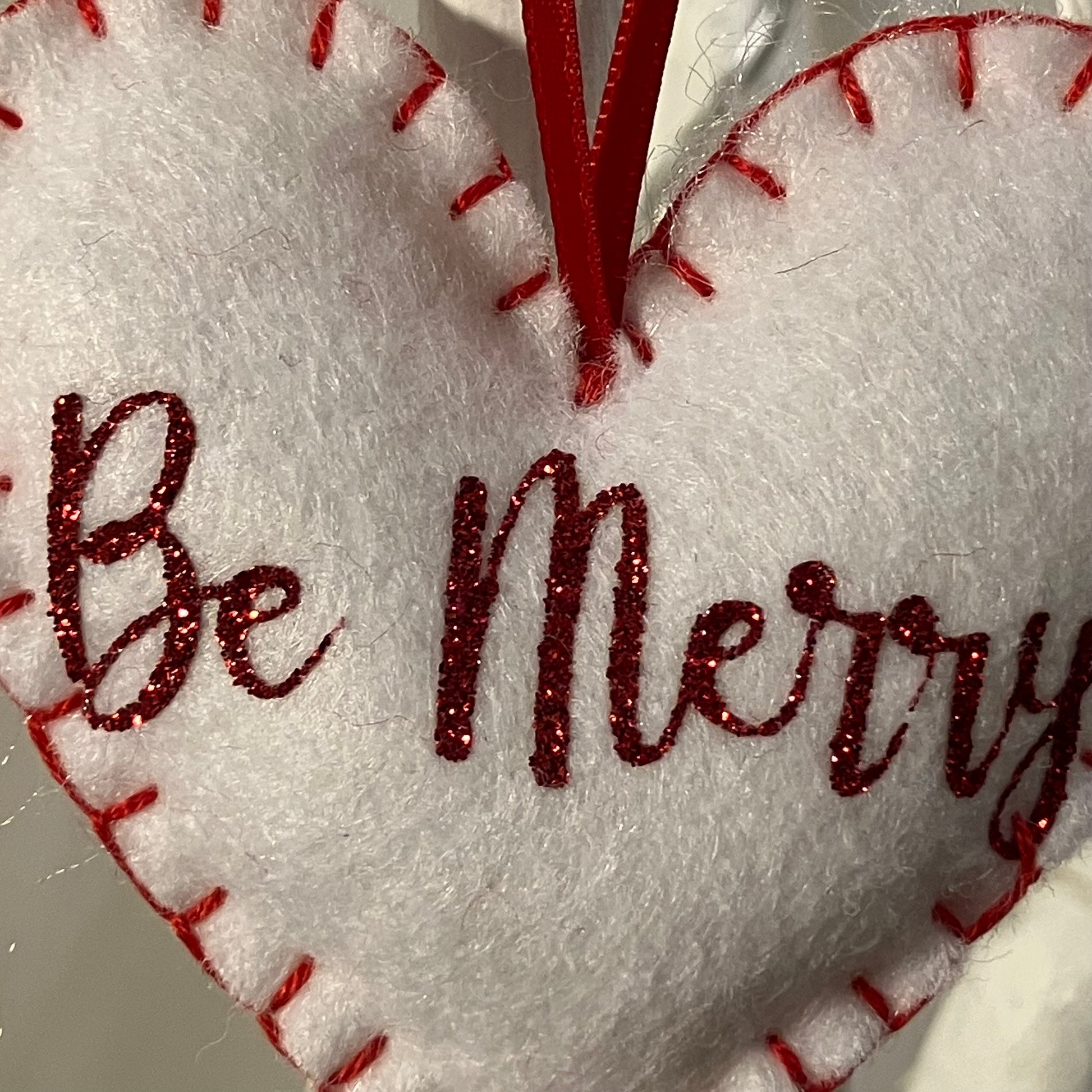 Beautifully handcrafted from high-quality felt, this charming ornament is shaped like a heart and features the classic festive phrase "Be Merry" stitched in a vibrant thread. Its lightweight and traditional design makes it a perfect addition to any Christmas tree, adding a touch of handmade warmth to your seasonal décor.