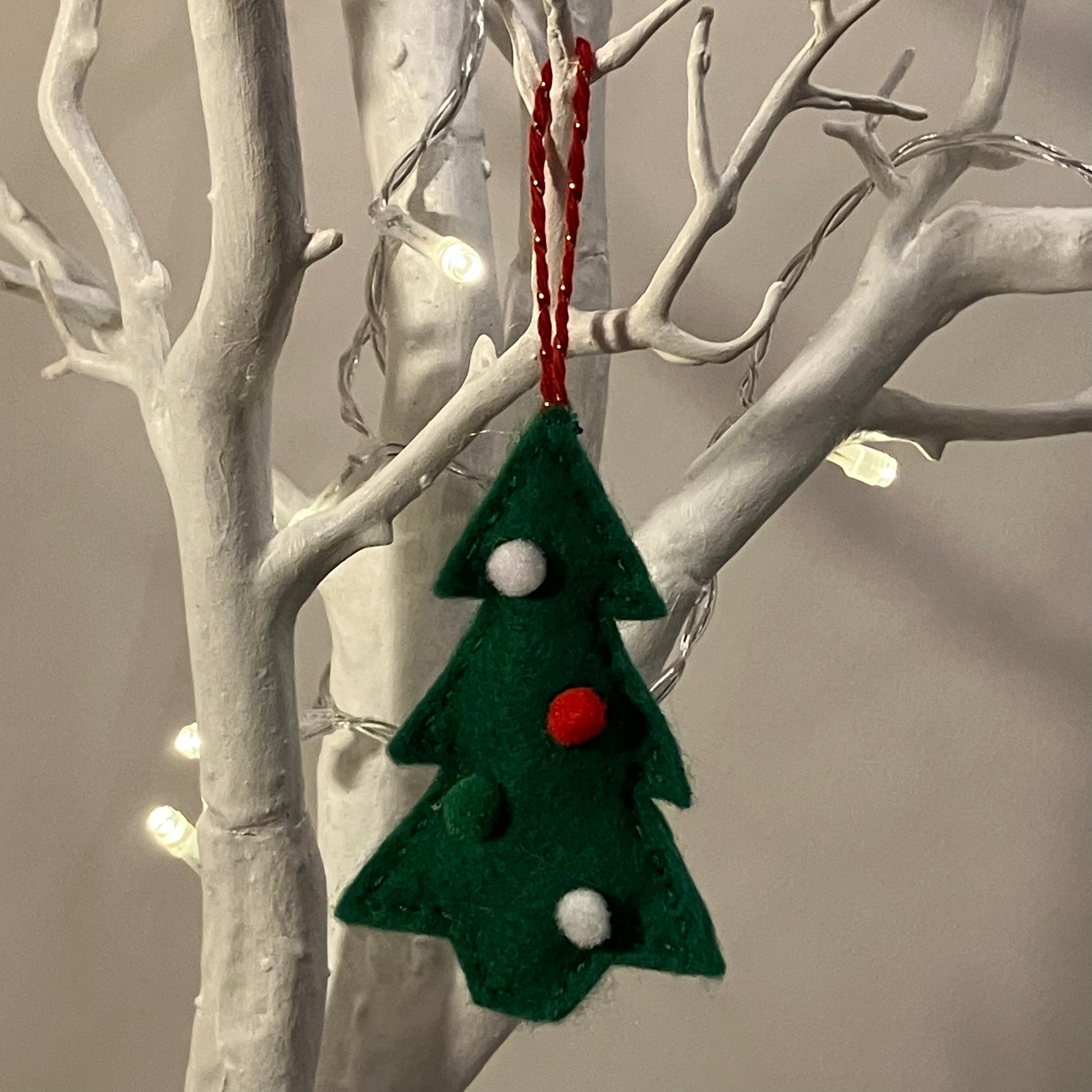 This adorable ornament is a timeless classic, featuring a simple green Christmas tree shape cut from cosy felt. It's the perfect, understated addition to any festive theme, whether you're decorating a large family tree or adding a small festive touch to a wreath or garland.